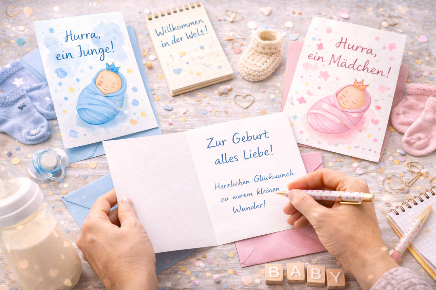 Ein Baby ist da – und du stehst vor der leeren Karte und weißt nicht, was du schreiben sollst? Damit bist du nicht allein. In diesem Ratgeber zeigen wir dir Schritt für Schritt, wie du eine Glückwunschkarte zur Geburt schreibst, die wirklich von Herzen kommt: vom richtigen Aufbau über passende Formulierungen bis hin zu über 20 kompletten Mustertexten für jede Beziehung – ob enge Freunde, Familie, Nachbarn oder Kollegen.