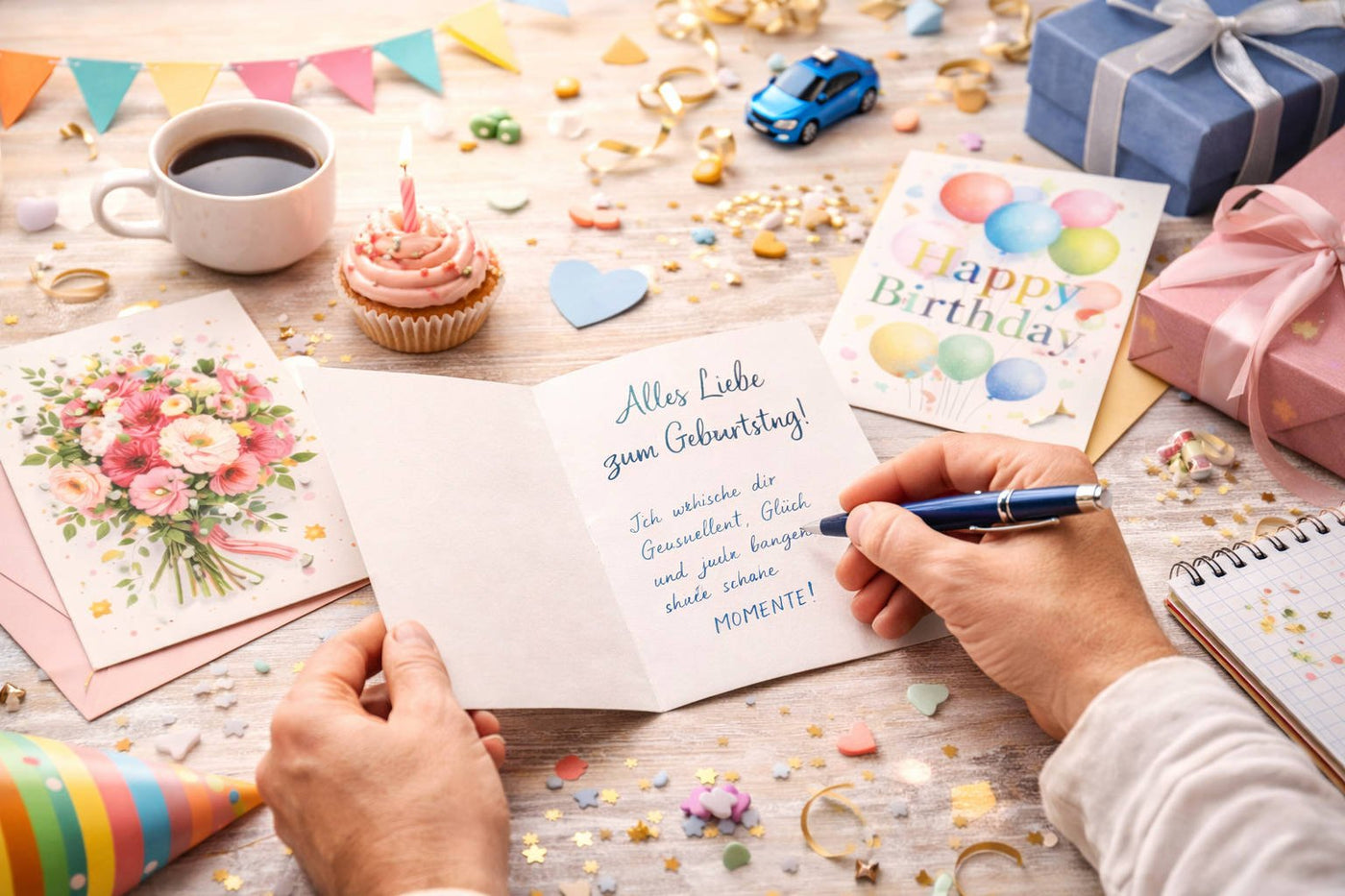 Die Geburtstagskarte liegt vor dir – und im Kopf dreht sich alles um dieselben drei Wörter: „Alles Gute zum Geburtstag.“ Klingt vertraut? Du bist damit nicht allein. Die meisten Menschen stehen vor einer leeren Karte und fragen sich, wie man mehr schreibt als eine nette Floskel. Die gute Nachricht: Es ist leichter, als du denkst, und dieser Ratgeber zeigt dir genau, wie es geht.