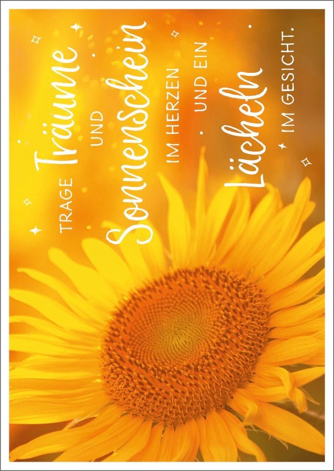 Lebensweisheit Postkarte: Träume und Sonnenschein im Herzen tragen