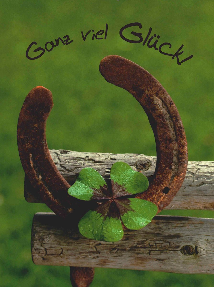 Postkarte mit Hufeisen und vierblättrigem Kleeblatt Ganz viel Glück Postkarte für besondere Anlässe und liebe Wünsche