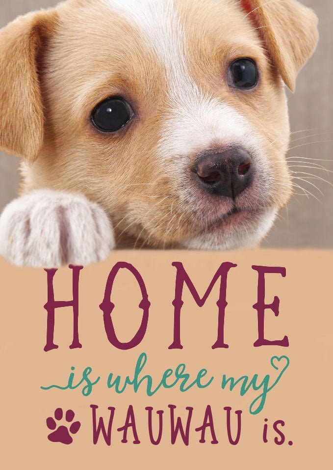 Postkarte Sprüche für Hundeliebhaber: 'Zuhause ist, wo die Pfote ist' - Herzlicher Gruß mit Hundeblick