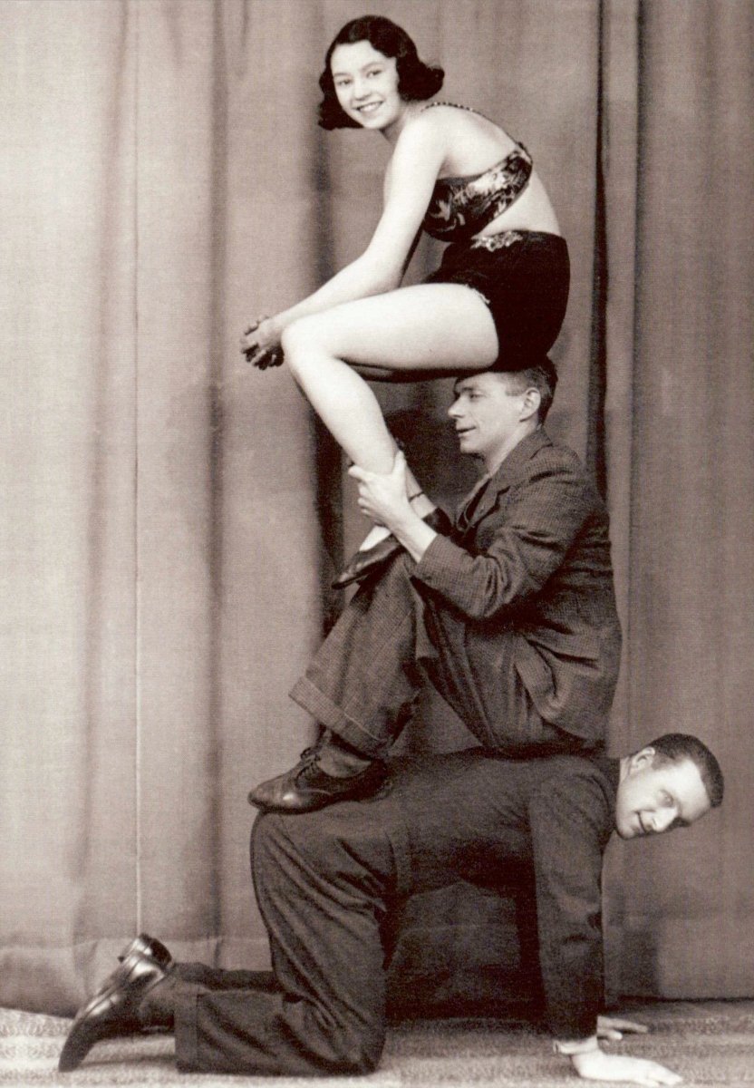 Schwarz-Weiß Postkarte Akrobaten Nostalgie Retro Design