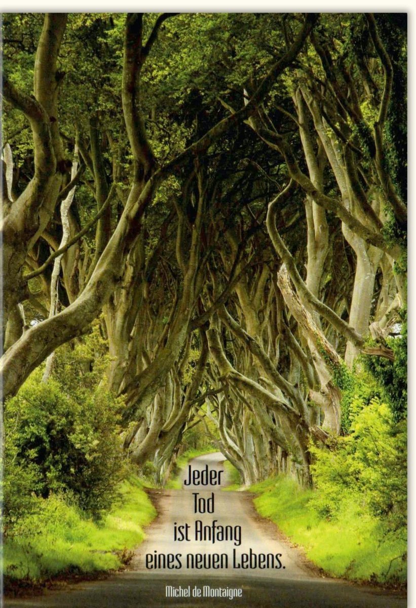 Trauerkarte Beileid - Baumallee Naturweg mit Montaigne-Zitat, Trost & Hoffnung, Spiritualität und Lebensweg