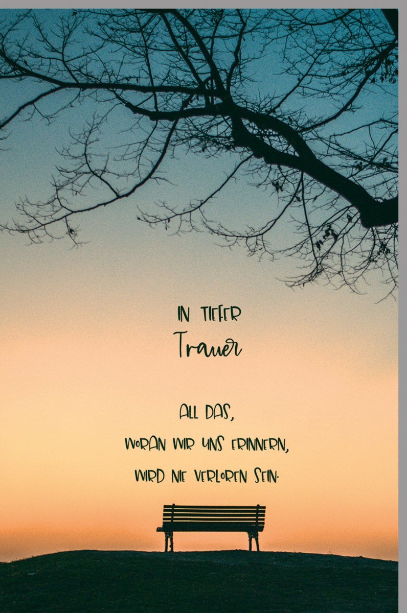 Trauerkarte - Diese stilvolle Doppelkarte 🌅 mit einem berührenden Naturdesign bietet dir einen würdevollen Weg, Anteilnahme auszudrücken. Eine einsame Bank vor einem beruhigenden Sonnenuntergang in den Bergen symbolisiert Ruhe und Reflexion. Mit dem einfühlsamen Spruch "In tiefer Trauer" spricht sie dich in Zeiten des Abschieds an und vermittelt Trost sowie Respekt. Ideal für Angehörige und Freunde, die ihr Mitgefühl und Beileid auf besondere Weise übermitteln möchten. Ein farblich passender Umschlag ist im Lieferumfang enthalten ✉️, um deine Botschaft stilvoll zu versenden.