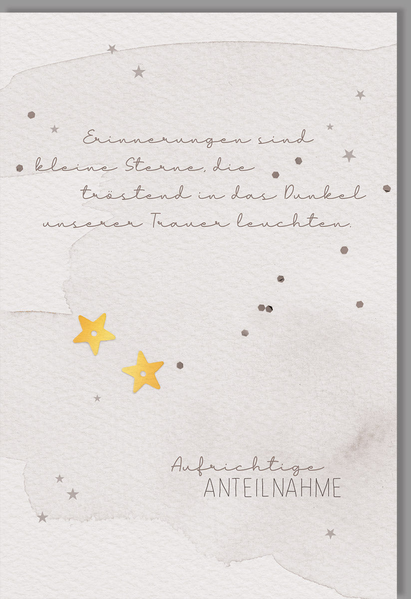 Trauerkarte mit Sternenmotiv - Einfühlsame Kondolenz in Grau, Naturkarton für Hinterbliebene, Trost und Anteilnahme in schweren Zeiten